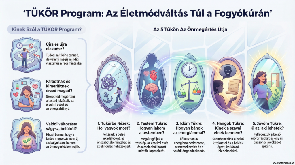 Élő, kiscsoportos online folyamat férfiaknak és nőknek, akik nem fogyókúrában gondolkodnak, hanem önmaguk megértésében – és elég bátrak ahhoz, hogy a tükörbe nézzenek.
